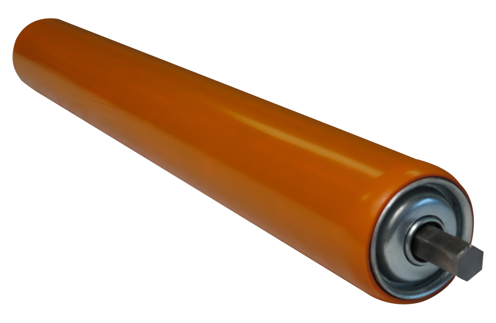 The Model DG roller is spring retained, constructed of a 1.9" diameter 12 gauge galvanized steel tube and a 7/16" hex plain steel shaft.